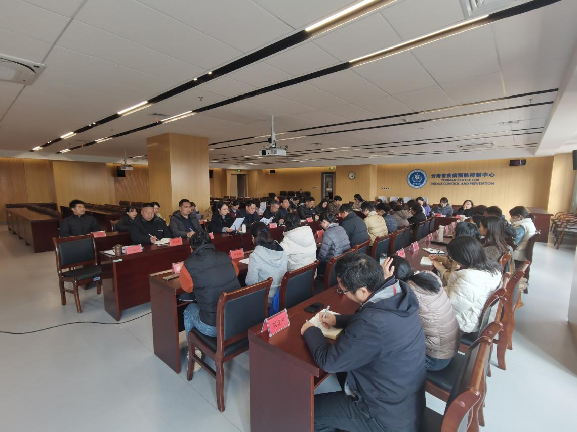 2025年12月24日下午,云南省疾控中心在呈贡办公区召开了2025年第四次沟通无处不在会议,参加本次会议的有中心党委书记左仕富、副主任赵世文、工会主席贾曼红、职能部门负责人和工会三委会成员30个工会小组长,共46人,会议由工会主席贾曼红主持。