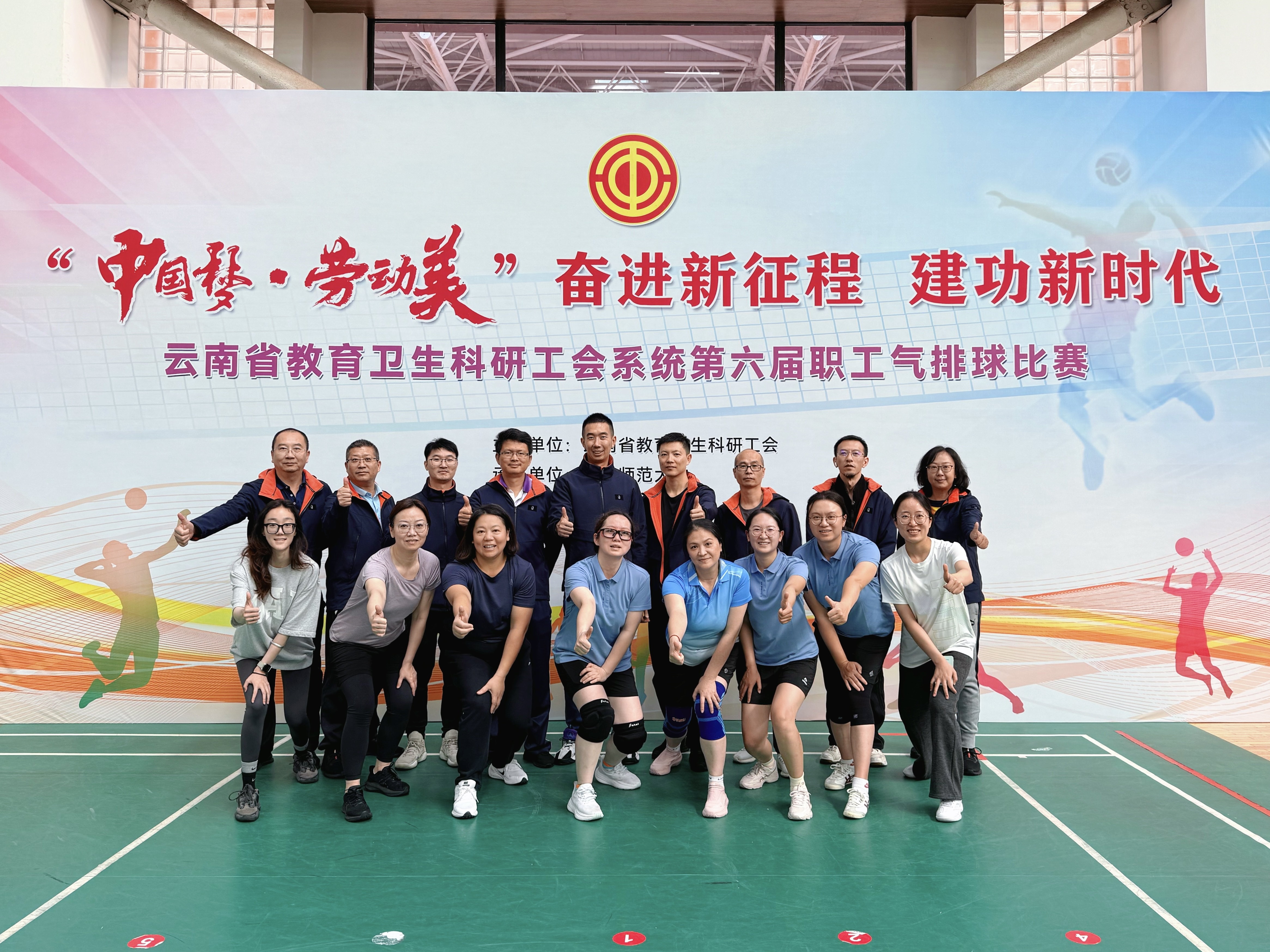 为深入学习贯彻党的二十大精神,落实全民健身国家战略,展现教卫科工会系统职工奋发进取的精神风貌,云南省教育卫生科研工会于2025年10月22日至26日举办第六届职工气排球比赛。本次比赛以“中国梦·劳动美——奋进新征程、建功新时代”为主题,由云南省教育卫生科研工会主办,云南师范大学承办。本次比赛共有51个单位89支队伍共1100余人参加,参赛队伍按系统分为卫生科研系统组、教育系统组、高职高专组,各组再分设男子组和女子组。云南省疾控中心共组织男女各9人两支队伍参加比赛。