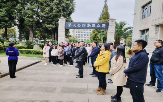 为深入学习贯彻习近平新时代中国特色社会主义思想,巩固拓展主题教育成果,进一步加强疾控团员青年的思想政治引领,厚植爱国主义情怀,引导团员青年铭记光荣历史、传承红色基因、汲取奋进力量,云南省疾病预防控制中心团委于2025年10月23日下午,组织团员青年赴西南联大旧址红色教育基地开展主题教育活动。中心副主任查舜、机关党总支书记沈永春、团委书记戴琳纾和中心团员青年共同参加。