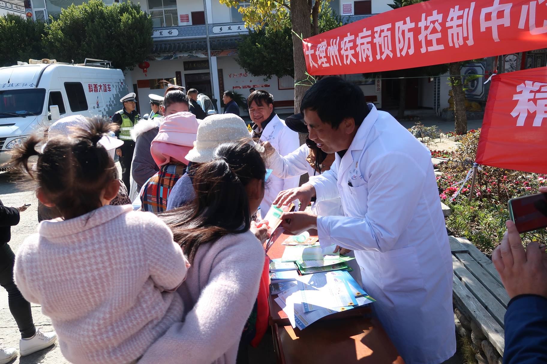 1月20日,大理州文化科技卫生三下乡活动在大理市湾桥镇古生村古戏台广场举行。按照州卫健委的安排,州疾控中心派出了以段炳华副主任领队,计划免疫、艾滋病防治和慢性病防治等相关专业人员组成的队伍,携带着疾病防控科普知识宣传资料参加了活动。
