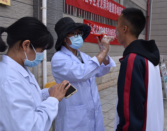 每到一所学校,工作组全体人员一丝不苟、耐心细致,开展监测的同时将监测数据现场录入“学生常见病监测平台”。
