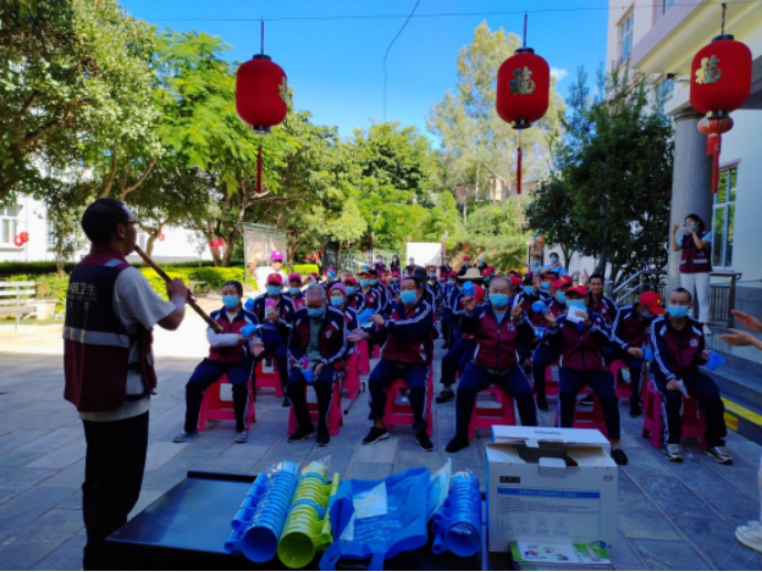 活动伊始,南涧县疾控中心专业人员用通俗易懂的方言、贴近生活的案例,结合老年人常见健康需求,以“日常生活中,我们老年人应该怎么做才能让自己更健康”、“老年人如何预防跌倒”为主题,围绕秋冬季呼吸道疾病预防、预防跌倒、合理膳食、适量运动、学会沟通放松情绪、树立正确健康观念和丰富精神文化生活等核心内容展开讲座,同时现场示范正确佩戴口罩、正确咳嗽及打喷嚏的方法,老人们听得认真、记得仔细,你一言我一语,掌声、笑声、询问声回荡在院子里,现场氛围温馨、愉悦。“这样的活动很贴心、很实用!”一位老人家拿着科普手册笑着说。