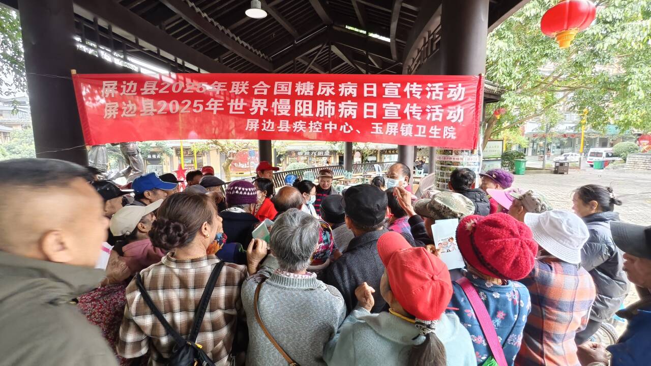 2025年11月14日是联合国糖尿病日,11月19日是世界慢阻肺病日。为响应国家卫生健康委关于慢性非传染性疾病防治工作部署,结合联合国糖尿病日“糖尿病与幸福感”及世界慢阻肺病日“呼吸不畅,当心慢阻肺病”的核心主题,屏边县疾控中心联合玉屏镇卫生院,以“普及防治知识、聚焦重点人群、推动行为转变”为目标,于11月13日在玉屏镇小广场开展了宣传活动,切实将慢性病防治知识传递至周边群众。