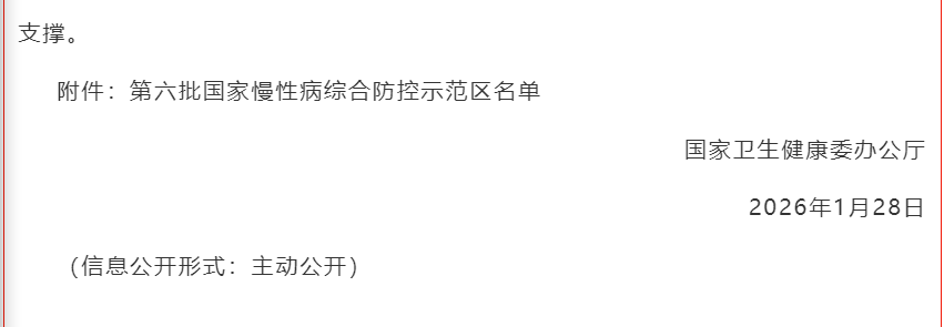 第六批国家慢性病综合防控示范区名单