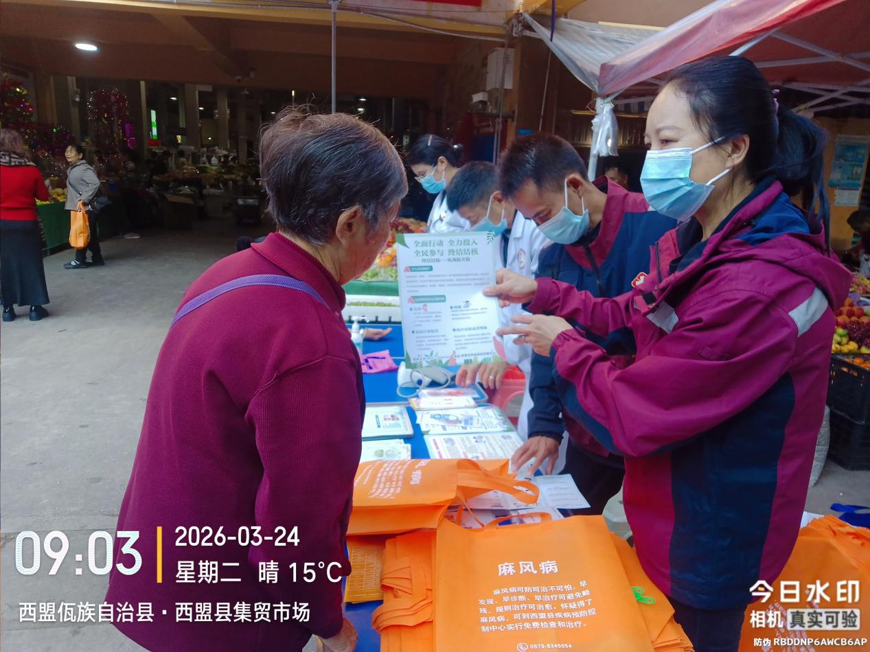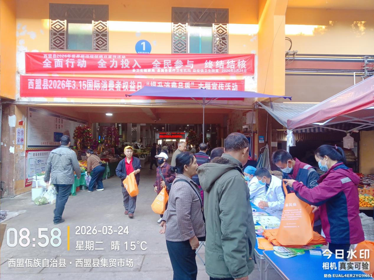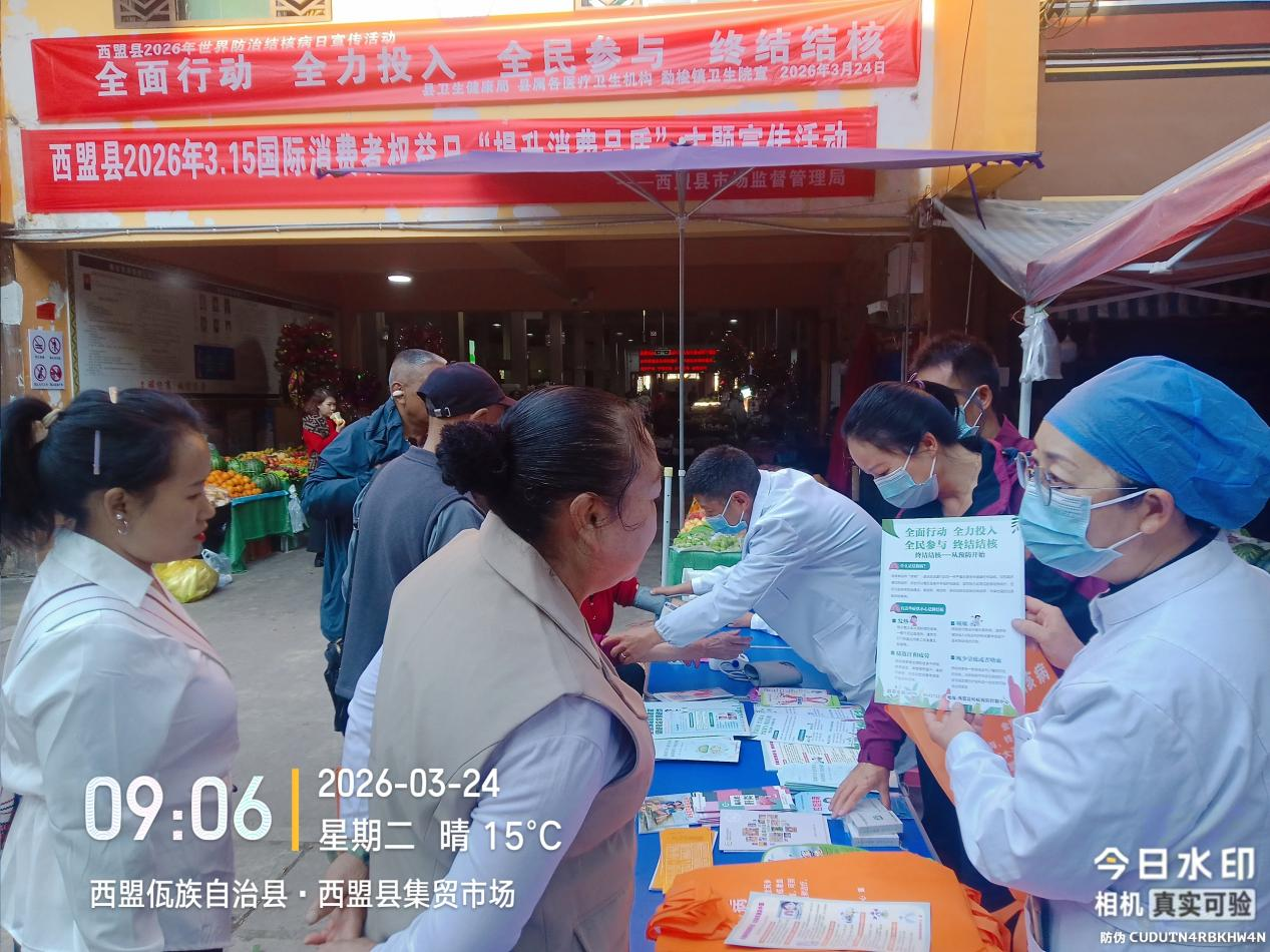 2026年3月24日是第31个世界防治结核病日,今年宣传主题为“全面行动、全力投入、全民参与、终结结核”。为普及结核病防治知识、提升群众健康防护意识,营造全民参与的防控氛围,西盟县卫生健康局联合县属各医疗单位,结合县域实际,在新县城集贸市场开展了主题宣传活动,西盟县疾控中心牵头组织并落实各项工作,取得良好成效。