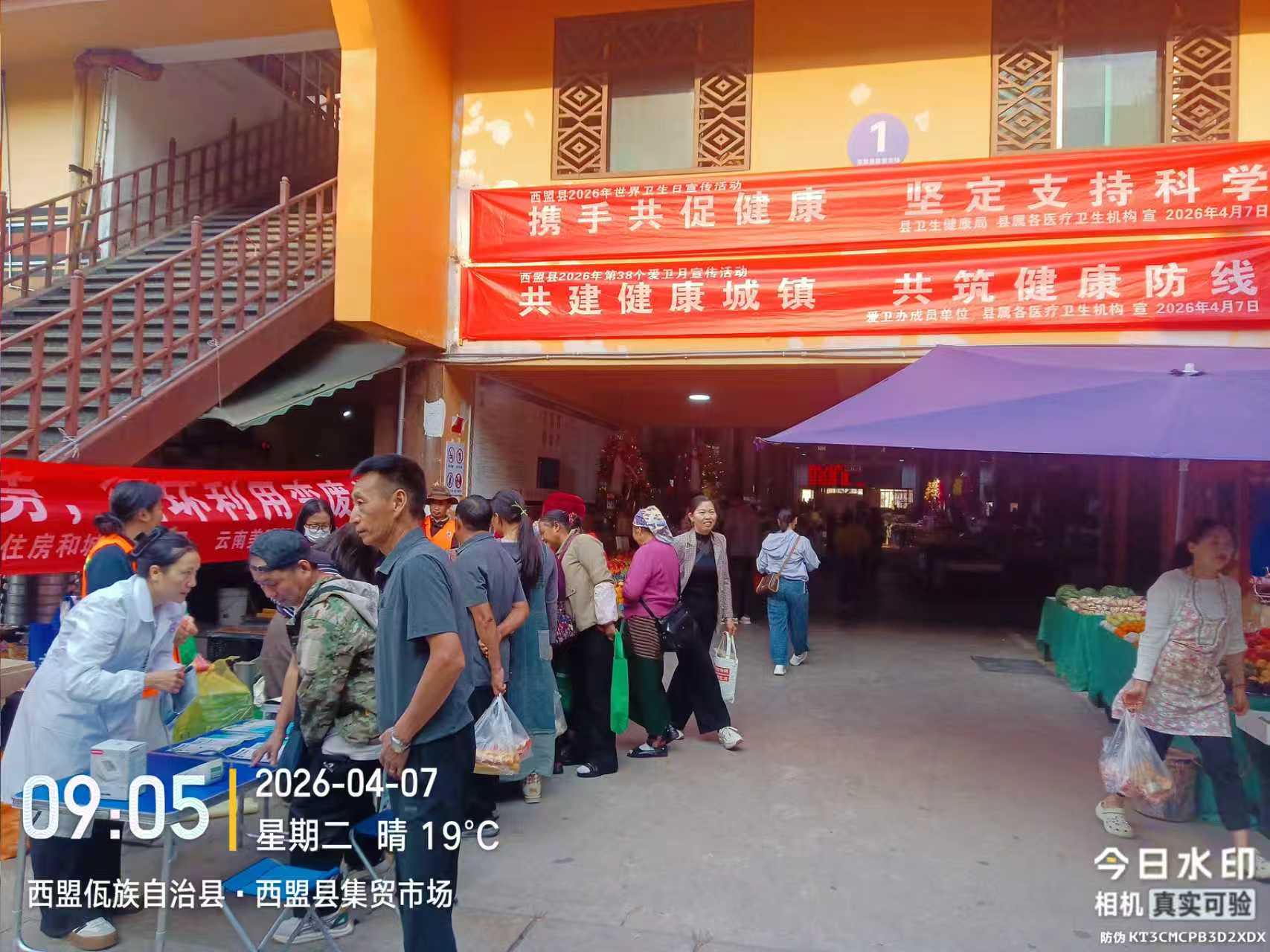 2026年4月是第38个全国爱国卫生月,主题为“共建健康城镇共筑健康防线”。4月7日,西盟县卫生健康局牵头,联合县疾控中心、县人民医院、勐梭镇卫生院、县农业局、美明保洁公司等多部门,在月光集贸市场集中开展爱国卫生月宣传活动。