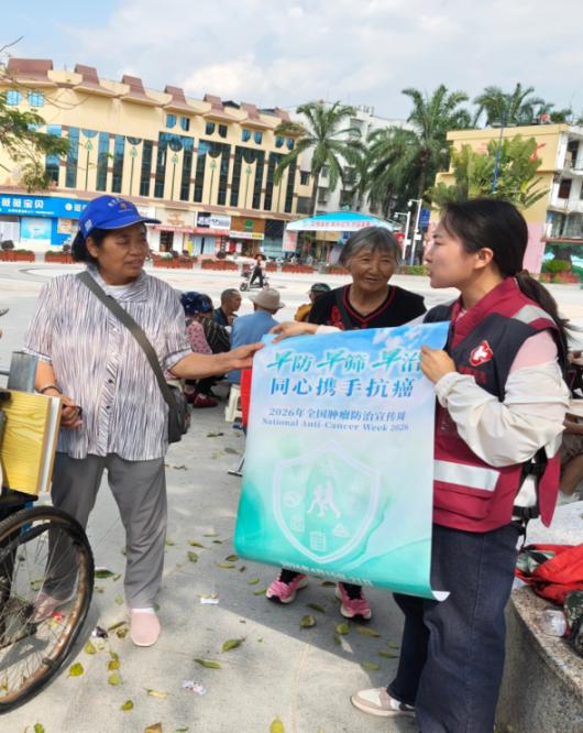 为积极响应全国肿瘤防治宣传周工作部署,进一步普及科学防癌抗癌知识,提升辖区老年居民肿瘤防治健康素养,引导老年人树立正确的健康观念,远离癌症危险因素,做到早预防、早发现、早诊断、早治疗,4月17日下午,景谷县疾控中心在辖区广场开展了针对老年居民的肿瘤防治科普宣传暨健康咨询活动。本次活动聚焦老年群体健康需求,以通俗易懂、便民务实的形式开展健康科普,切实把防癌健康服务送到老年群众身边。本次活动以“早防早筛早治 同心携手抗癌”为核心主题,紧扣中国防癌健康生活方式守则,针对老年居民认知特点、健康痛点及日常防癌误区,为老年人答疑解惑、开展健康指导。