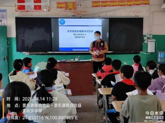 为进一步推进健康校园建设,提升在校师生对碘缺乏病、登革热等重点疾病的防控意识与自我防护能力,景东县疾病预防控制中心地病科于2026年4月14日在龙街乡中心完小开展了专题健康知识讲座。