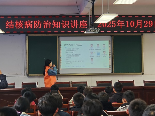 与此同时,茨营中学的结核病防治校园健康讲座也同步进行。医务人员通过现场互动、有奖问答、播放动画视频等轻松愉快的方式,向学生们展示了结核病的常见症状、传播方式、预防措施等健康知识,引导学生养成“勤洗手、常通风、多运动、均衡营养、不随地吐痰”的生活卫生习惯,筑牢校园健康防线。