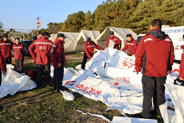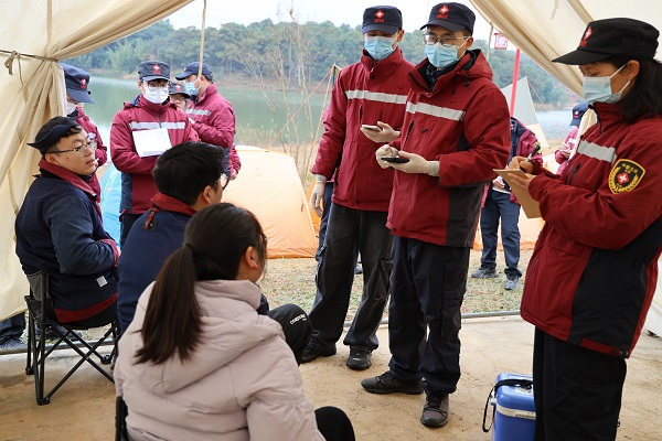 12月20日,演练模拟灾区安置点发生聚集性发热和聚集性腹泻疫情,省、市、区卫生应急队伍联合开展了疫情的调查处置工作。同时,云南省疾控中心的老师为队员们进行了急救、通信、流调、后勤保障等应急设备的使用和现场流行病学调查及病原学标本的采集等的现场培训。