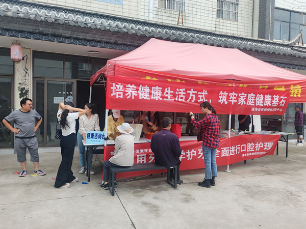 活动现场,工作人员悬挂了“培养健康生活方式,筑牢家庭健康基石”、“人人行动,全民控盐”、“合理用牙、科学护牙、全面进行口腔护理”3条醒目的主题宣传横幅,营造出浓厚的宣传氛围。