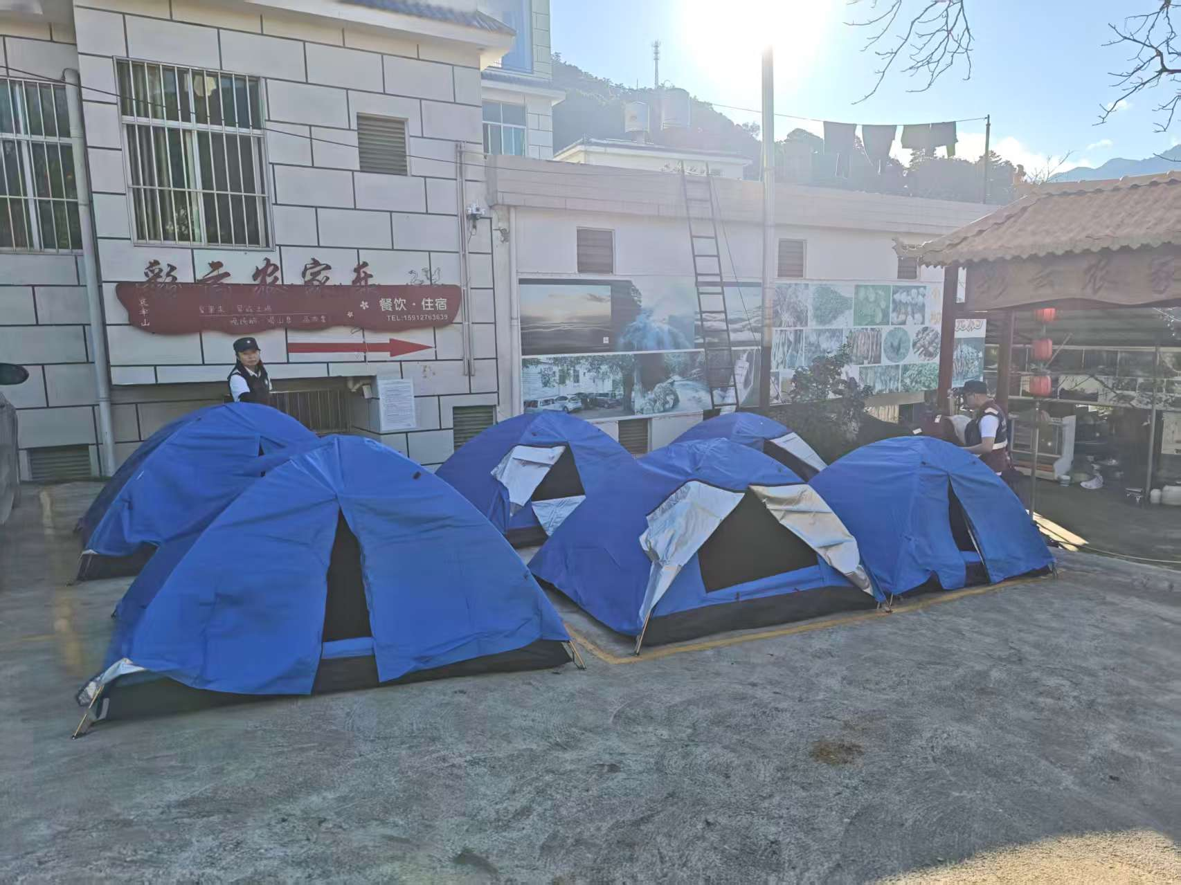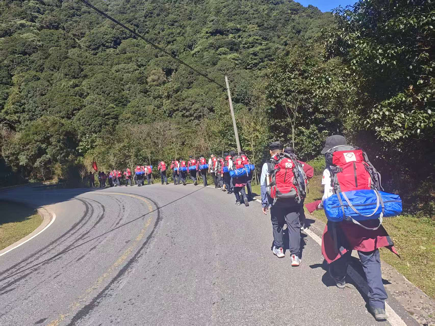 本次训练紧扣实战需求,重点开展徒步负重体能训练,锤炼野外负重能力和体能耐力,夯实应急支援的体能基础。全体队员背负个人应急携行背包,由金山丫口出发,在山地道路中长途行进,历时4个多小时,总行程约18公里,所有参训队员均顺利到达演练终点。随后,参训人员进行了个人生活帐篷搭建实操,从选址、支架固定到防风防雨处理,队员分工协作、动作迅速,进一步强化了野外生存与自我保障技能。