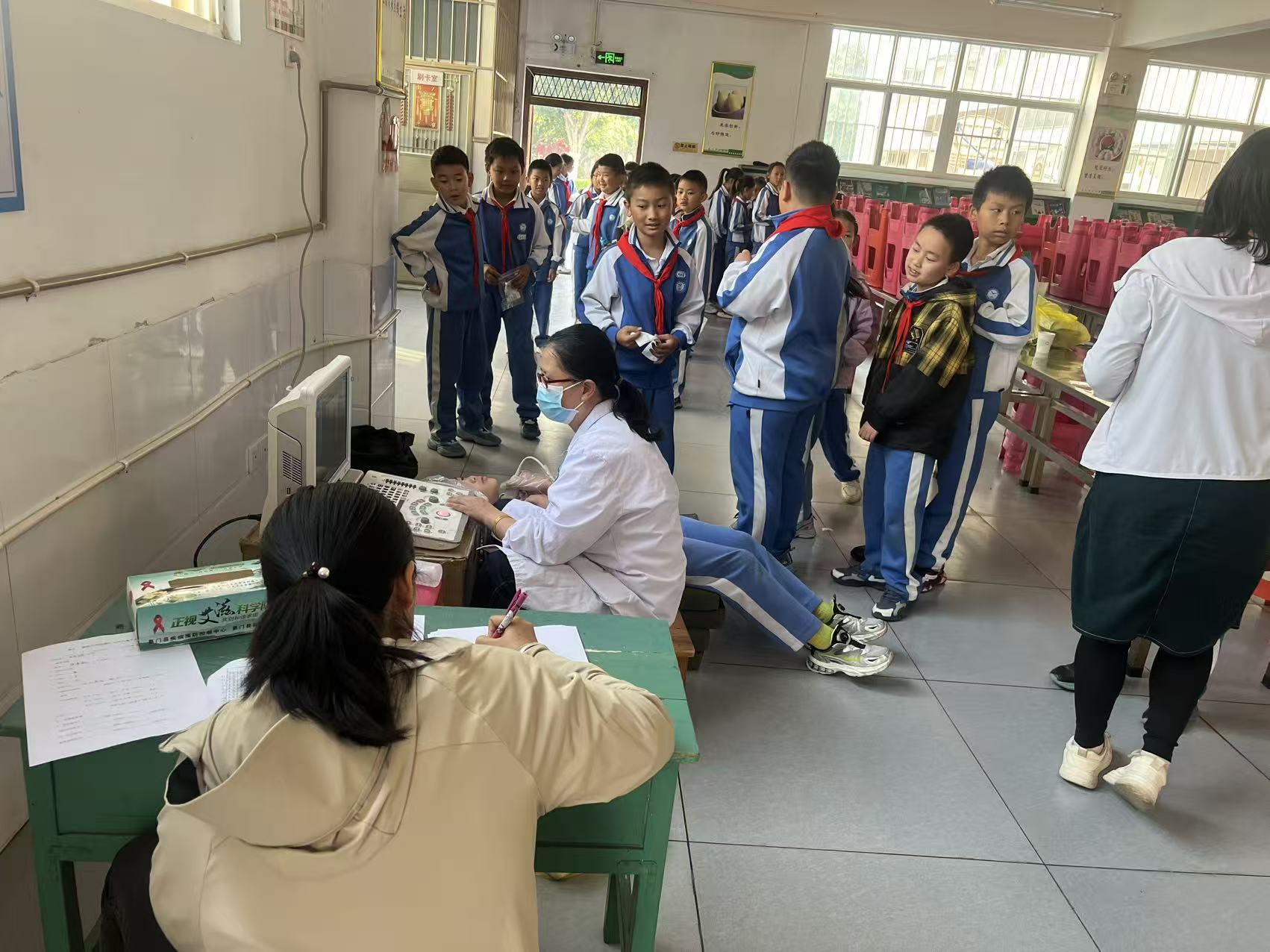采样工作严格按照监测方案要求,规范开展各项采样任务,全程遵循“采样—登记—保存—转运”闭环管理,做到“一人一档、一样一码”,确保样本信息可追溯、无遗漏。工作人员于2026年4月13-15日,到易门县龙泉镇中屯小学、小街乡中心小学、六街街道中心小学、十街乡中心小学、浦贝乡中心小学有序开展碘缺乏病现场监测工作:一是采集8-10周岁学生家庭食用盐样本,详细记录盐样来源、品牌等信息,用于实验室盐碘含量检测,评估碘盐普及与合格情况;二是规范采集学生随机尿样,严格把控尿样保存条件,确保样本无污染、无变质,用于测定尿碘浓度,直观反映近期碘营养水平;三是为8-10周岁学生开展甲状腺B超检查,排查甲状腺肿大情况,实现早发现、早干预;四是医共体总医院龙泉分院、浦贝分院、十街分院、小街分院、六街分院同步采集孕妇家庭食用盐样本及随机尿样,并将样品规范保存、转运至疾病预防控制中心检测。