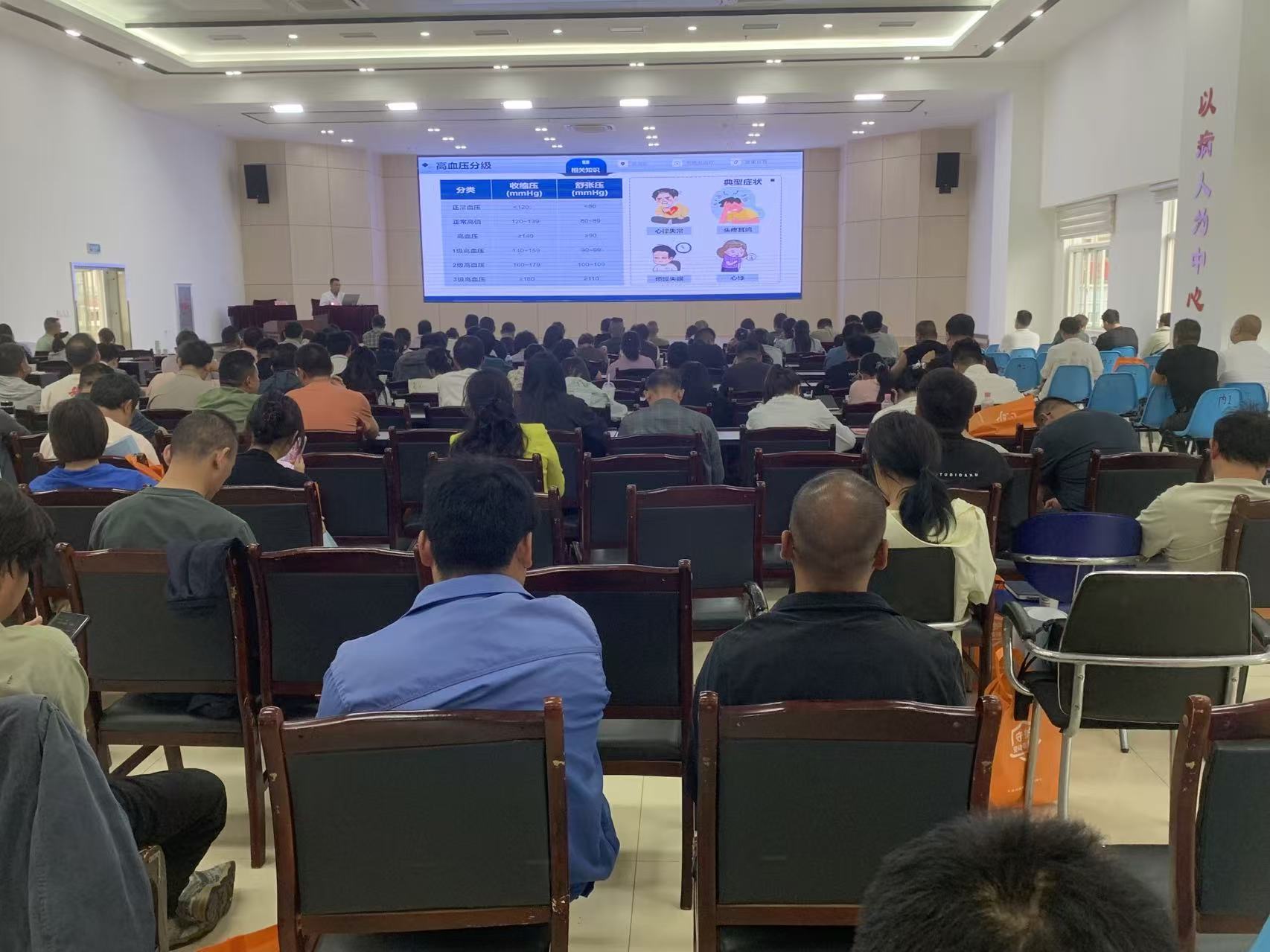 本次讲座特邀县医院普雁昌医生担任主讲讲师,普医生结合企业职业人群工作特点,围绕高血压防治核心知识,开展了全面、系统的讲解。培训重点涵盖三方面内容:一是高血压的诊断标准、常见诱因,重点解析了久坐、熬夜、饮食不规律、精神压力大等与职业相关的诱发因素,以及长期患高血压对心脑血管系统的严重危害;二是针对企业负责人,着重强调高血压防控工作对员工身心健康、企业用工稳定性及生产效率的重要意义,明确企业在职业健康管理工作中应承担的主体责任;三是针对职业健康管理员,重点讲解了高血压筛查流程、员工健康档案规范建立、高血压患者日常干预措施。普医生结合临床案例,用通俗易懂的语言拆解专业知识,避免晦涩难懂的理论堆砌。