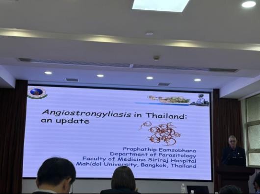 本次会议围绕管圆线虫流行病学、宿主与寄生虫、诊断与临床研究以及管圆线虫的技术创新4个主题开展学术报告,详细介绍了管圆线虫感染与宿主之间的定量分析、管圆线虫感染引起的宿主炎性损伤机制、基于全基因组学的管圆线虫性别鉴定以及基于qPCR的无创性检测和入侵螺类肠道菌群与其适应性关系在寄生虫病防控中的作用等内容。同时泰国、西班牙、中国的专家针对本国管圆线虫病研究进展以及监测与控制情况进行了汇报。