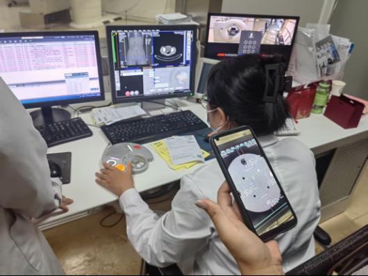 工作组主要通过查阅报告、核对原始记录、核实医疗机构及非医疗机构基本情况调查表、现场勘查照片、数据计算过程及检测操作交流等多种方式,对保山市疾控中心自主监测数据的准确性和报告撰写的规范性进行全面评估。期间工作组深入保山市人民医院,严格按照省级方案与质控要求,对抽检的医用电子直线加速器、CT、DR等设备信息、防护检测点布点选取、现场检测操作溯源流程、数据处理方法以及个人防护用品配备等关键信息进行了细致核查。