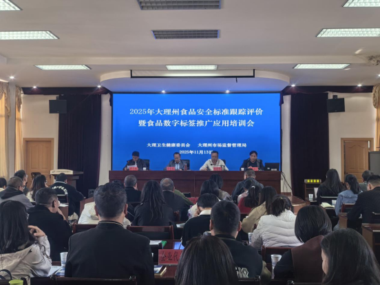 为扎实推动2025年食品安全标准跟踪评价与预包装食品数字标签推广应用工作有序开展,进一步提升食品安全标准的实践应用水平,11月13日,大理州食品安全标准跟踪评价暨预包装食品数字标签推广应用培训会顺利举办。州卫生健康委、州市场监督管理局、州农业农村局、州疾控中心(州卫生监督所),各县市市场监管局、卫生健康局、疾控中心(卫生监督所)以及38家食品企业代表共计96人参加。我中心应邀派出质量管理部3名工作人员参与本次培训授课工作。