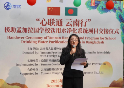 云南省疾病预防控制中心主任丁文飞在致辞中介绍,该项目是落实云南省省长王予波访孟共识、推动滇孟务实合作的具体行动,项目承载着对孟加拉国教育事业的美好祝愿,也凝聚着中孟公共卫生领域的合作共识,希望以此为契机,推动双方在校园公共卫生管理、健康知识普及、医疗卫生人才培训等方面深化交流,共同提升民生福祉。