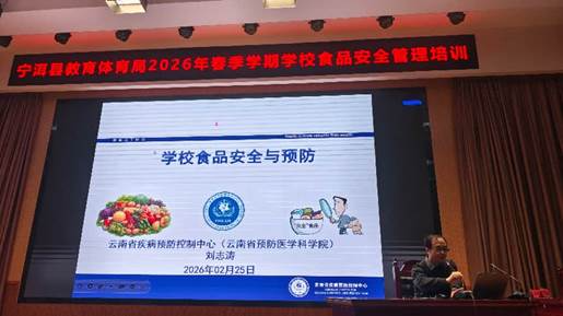 “民以食为天 食以安为先”,食品安全事关学校师生的身心健康和生命安全,事关社会和谐稳定。为有效预防学校食物中毒等突发公共卫生事件发生,确保学校师生身体健康和生命安全,2026年2月25日,普洱市宁洱县教体局邀请了云南省疾控中心(云南省预科院)营养与食品卫生所刘志涛所长开展食品安全培训授课并交流。