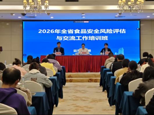 为进一步提升全省食品安全风评估与交流专业技术能力,筑牢食品安全防线,省疾控中心于2026年3月23日—26日在昆明市举办2026年全省食品安全风险评估与交流工作培训班。全省16个州(市)、32个重点县(市、区)食品安全风险评估与营养健康工作人员及省疾控中心相关业务骨干,共90余人参训。云南省食品安全风险评估专家委员会专家、云南省营养学会公共营养与健康管理分会委员和云南省预防医学会食品卫生分会委员线上参会。国家食品安全风险评估中心评估二室主任张磊、省卫生健康委食品处处长曾建辉、省疾控中心副主任贾曼红出席开班仪式。