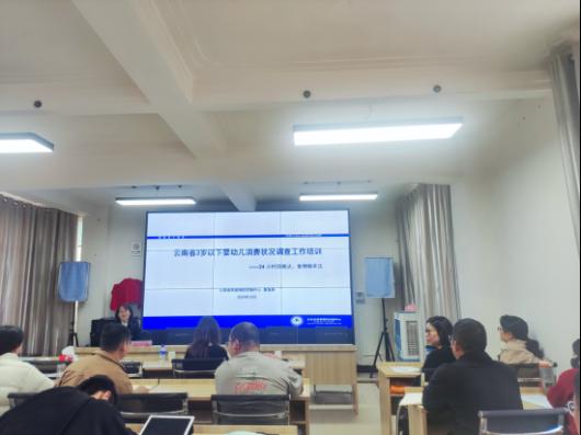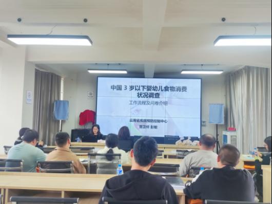 为建立和完善我国食物消费量数据库,科学开展食品安全风险评估项目,国家选取玉溪市江川区开展云南省3岁以下婴幼儿食物消费状况调查工作,2024年10月10日—13日在玉溪市江川区进行居民食物消费状况调查启动培训以及预调查工作。云南省疾控中心营卫所所长刘志涛、副所长董海燕、彭敏、肖维洁,江川区疾控中心、乡镇卫生院、村卫生室相关工作人员等30余人参加启动培训。