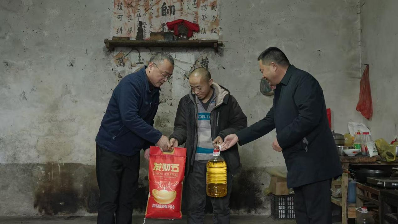 慰问组深入村寨,走访慰问了部分困难群众。“身体怎么样?”“年货备齐了吗?”“生活中还有什么困难?”每到一户,左仕富都与群众促膝交谈,拉家常、问冷暖、听心声,详细了解他们的家庭情况、健康状况、经济来源以及政策享受情况并为他们送上米、油等慰问品,致以新春的美好祝愿。一句句贴心的话语,一声声真挚的问候,让困难群众倍感温暖,连连感谢党和政府的关怀,感谢驻村工作队的帮助。走访中,左仕富叮嘱驻村队员要时刻把群众的安危冷暖放在心上,用心用情解决好群众急难愁盼问题,尤其要关注特殊困难群体,确保他们温暖过冬、祥和过年。