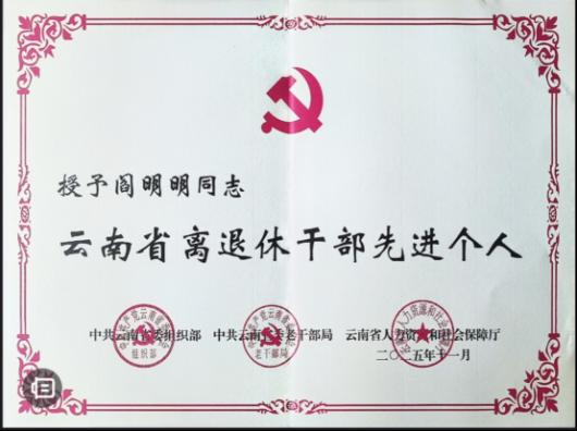 11月6日,云南省离退休干部先进集体和先进个人表彰大会在昆明举行。中心原党委书记阎明明同志荣获云南省离退休干部先进个人表彰。