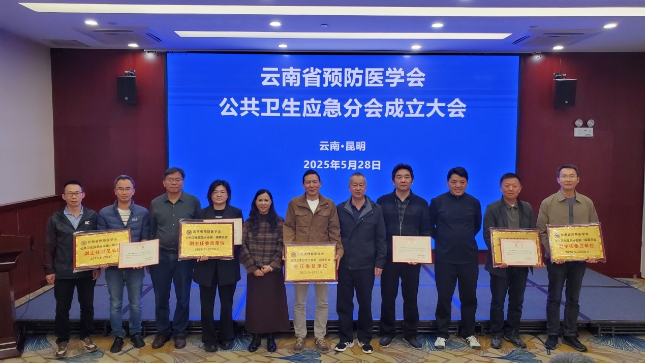 云南省预防医学会秘书长李琼芬主持公共卫生应急分会成立大会并宣读《云南省预防医学会关于成立公共卫生应急分会的通知》。大会选举产生公共卫生应急分会第一届常务委员会、主任委员和副主任委员。省疾控中心副主任赵世文向分会主任委员单位云南省疾控中心、副主任委员单位云南省地方病防治所、云南省寄生虫病防治所、云南省第一人民医院、大理州疾控中心授牌,并对分会工作提出要求,希望分会充分发挥作用,更好地促进全省卫生应急工作的发展和学科建设,为卫生应急工作者提供新理论、新知识、新技术和新方法的学术交流平台。