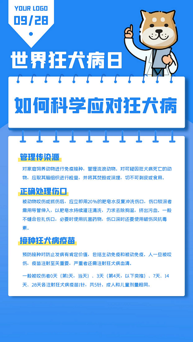 有效地控制动物的狂犬病感染和传播,就能从源头上切断人类的感染途径。这也是最根本、最有效的预防措施。为此,我们作为社会一员,应首先做到规范饲养和管理动物,具体包括: